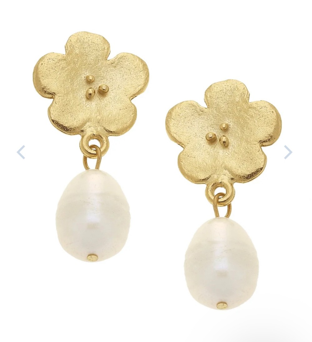 There's something so sweet about the Poppy Pearl Drop Earrings. From the soft edges of their abstract petals to the dotted flower center to the freshwater pearl drop, they are great for all ages. Plated in 24K gold, this design comes from a mold that was handcrafted by Susan Shaw.