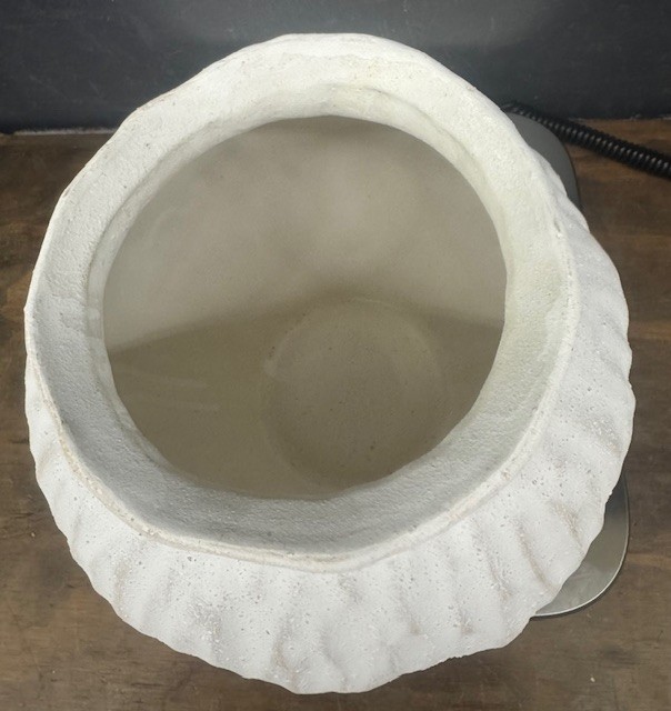 Its classic rounded shape makes it perfect for displaying florals, greenery, or as a standalone decorative accent. The subtle distressed texture adds a touch of modern farmhouse and timeless style, making it easy to incorporate into any décor.